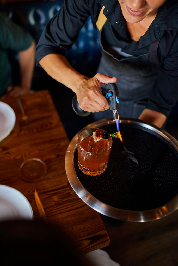 Head to downtown San Diego, and you’ll find Huntress sitting pretty in the Gaslamp Quarter. The interior is gorgeous with high ceilings, hanging lights, and clean furnishings.