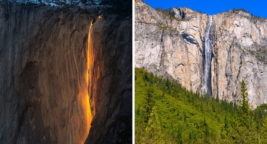 Across the street, right next to the sheer cliffs of El Capitan, you can see Horsetail Falls. This fall is famous for its firey spectacle in February. When the sun hits the fall just right, it appears as if the water turns into a stream of fire, gushing over the side of the mountain. This is still on my bucket list of things to see!