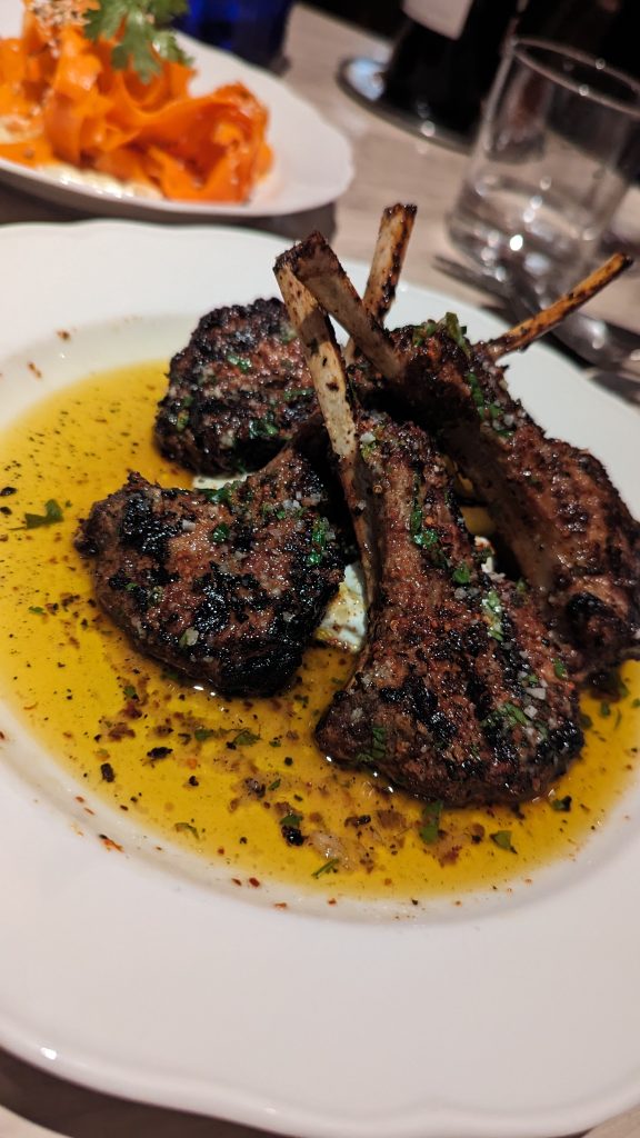 I love eating family style there and ordering a bunch of dishes and then trying them all. I really love their three-cheese arancini and their 1 pound Wagyu meatball is a must every time I go. And if a whole fish doesn’t intimidate you, order the branzino. Sooo delicious!