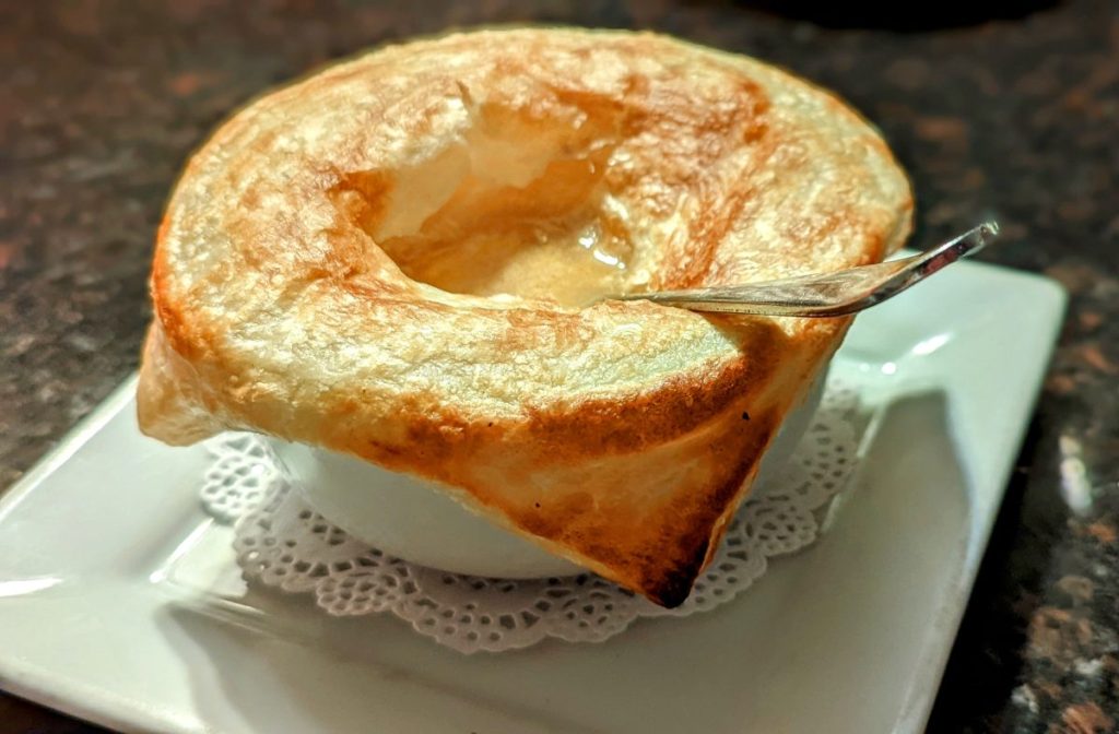 One of the must-try dishes is the famous mussel bisque, served with a puff pastry shell that is absolutely divine. According to their website, they sold over 1 million of them so far.