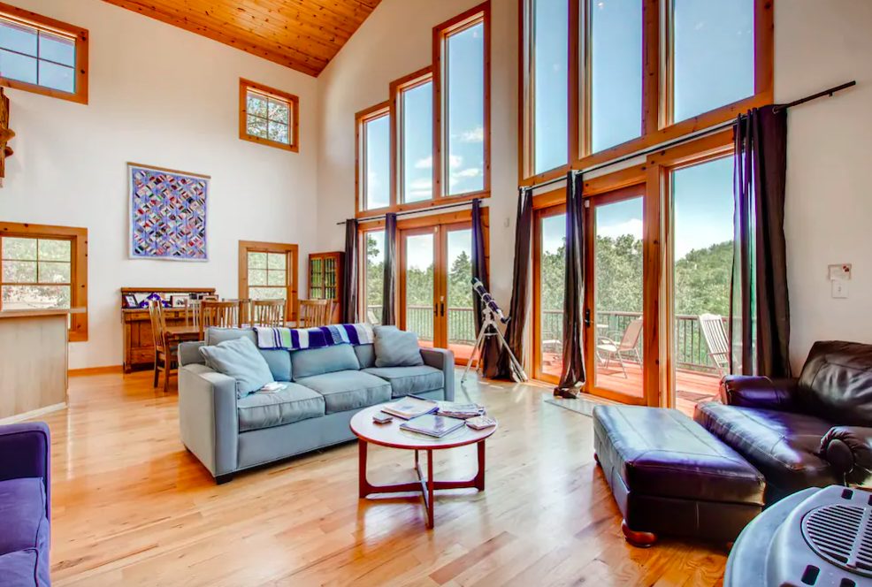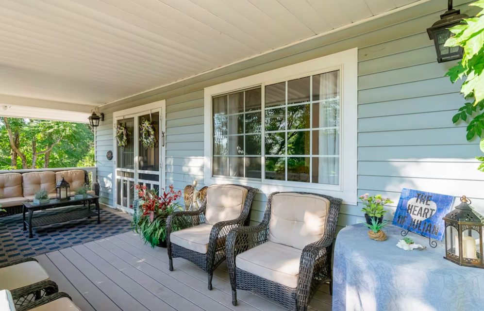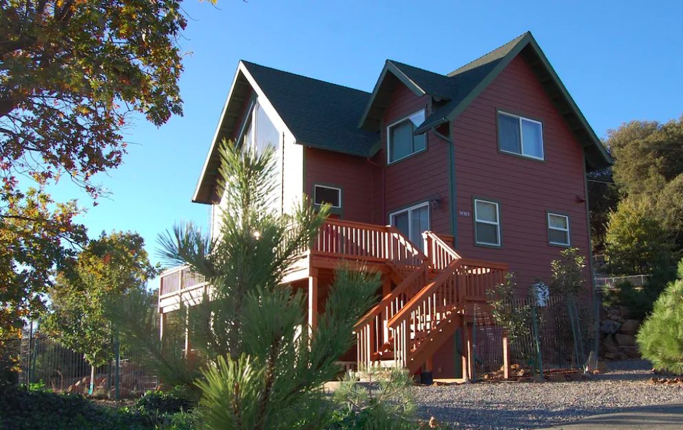 This elegant property offers outstanding views of Lake Cuyamaca and even the Pacific Ocean. It’s suited for those looking to spend big on their holiday in Julian. The home features three huge bedrooms, three nicely designed bathrooms, and sleeps 14 people.