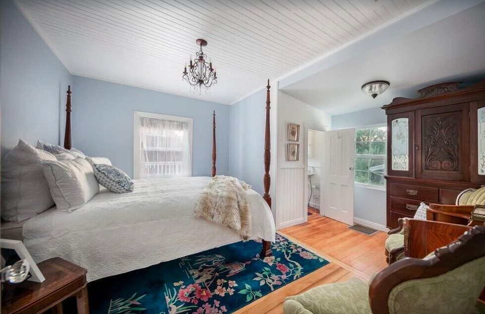 This three bedroom, two bathroom farmhouse sleeps five and sits atop a six acre apple orchard. It’s ideal for a family retreat or relaxing getaway with your significant other.