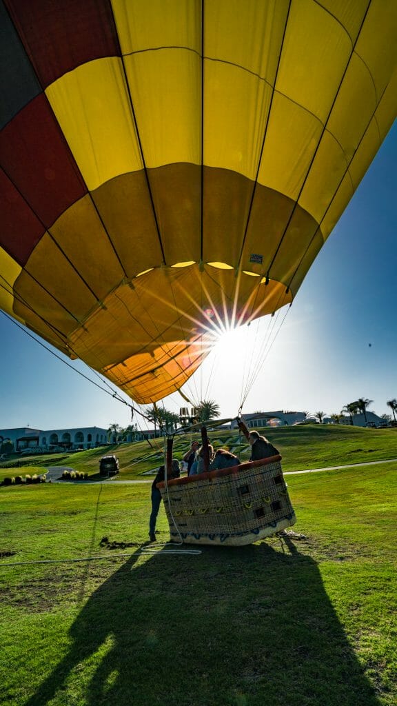 Neither Greg nor I had ever been on a hot air balloon, so this was an exciting “first” for us. We were complete noobs, so we had no idea that we had to climb into the basket. Had I known, I would have definitely not worn a long dress and high heels. So keep that in mind, when you plan for your hot air balloon experience.