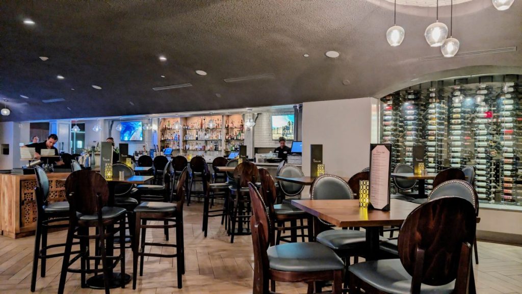 Just off the main entrance, you can find the stairs leading down to The Cellar Bar. A mix of modern decor, vaulted ceilings, and jazzy vibes makes for a fun ambiance. Little nibbles, craft cocktails, and, of course, wine offer a great selection for a pre-or post-dinner drink.