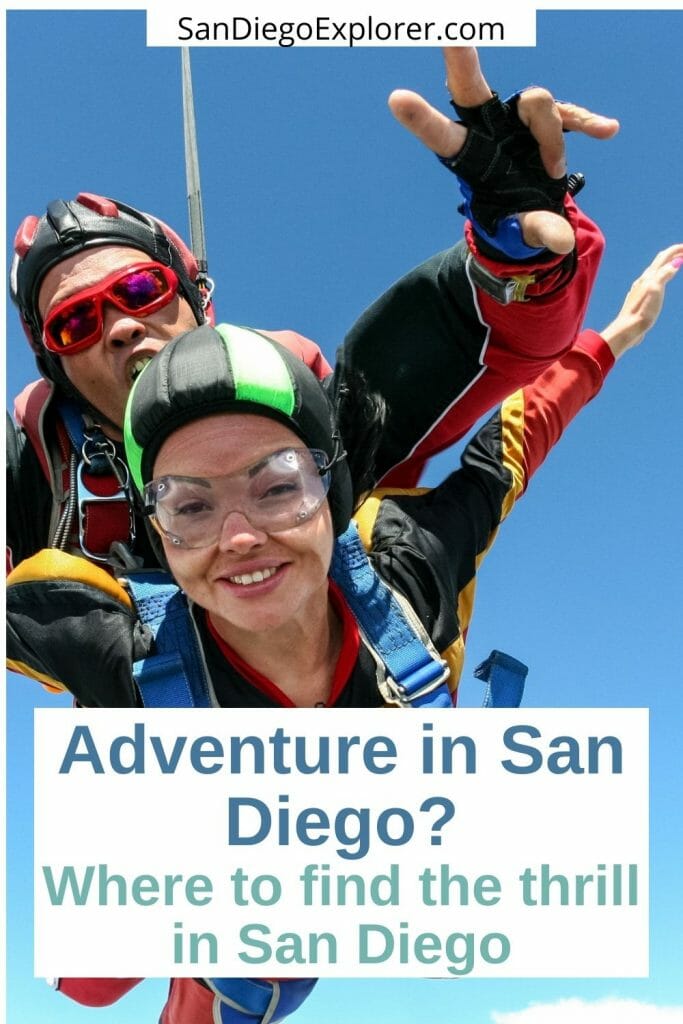 tandem skydivers with text over lay: Adventure in San Diego - Where to find the thrill in San Diego